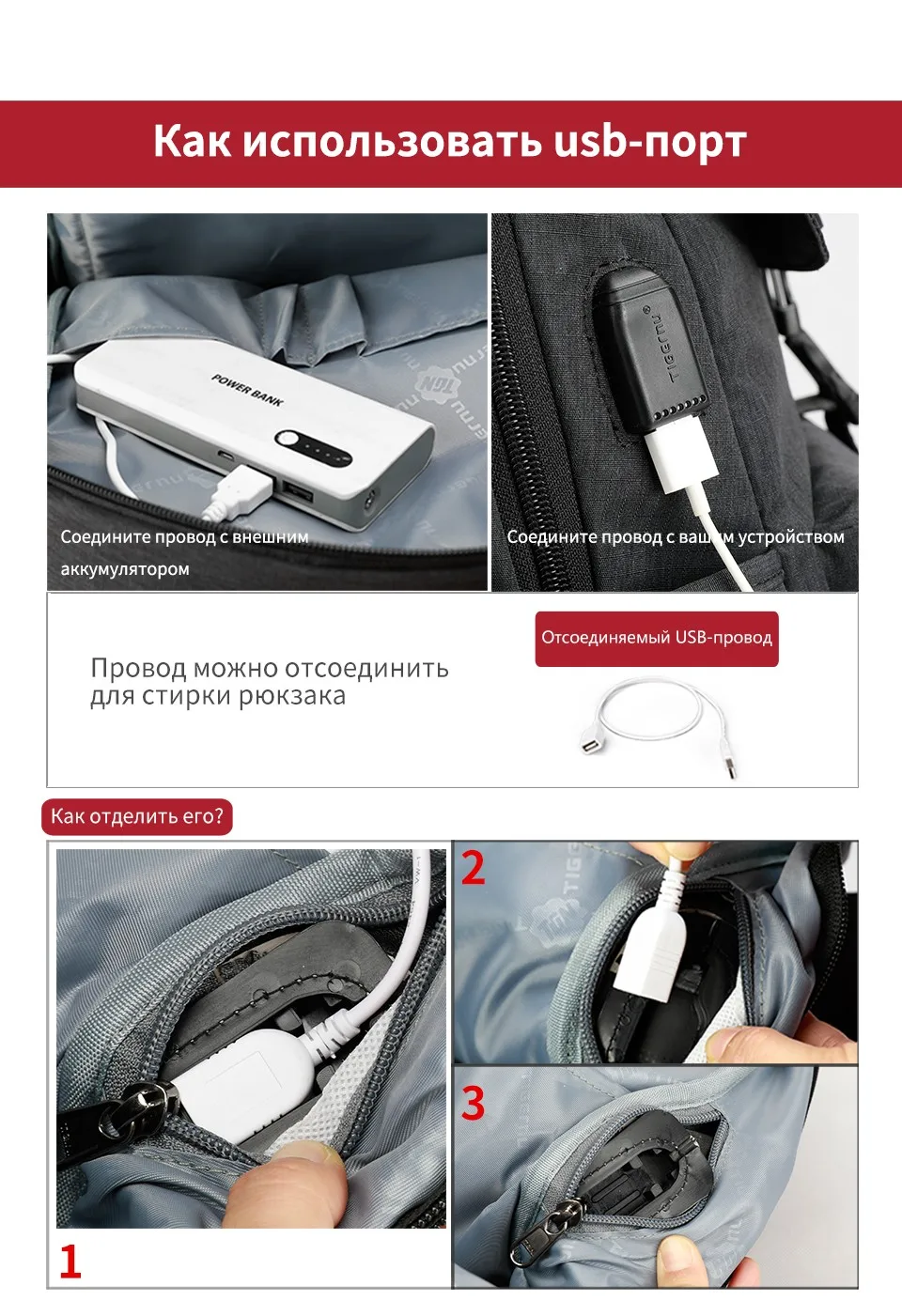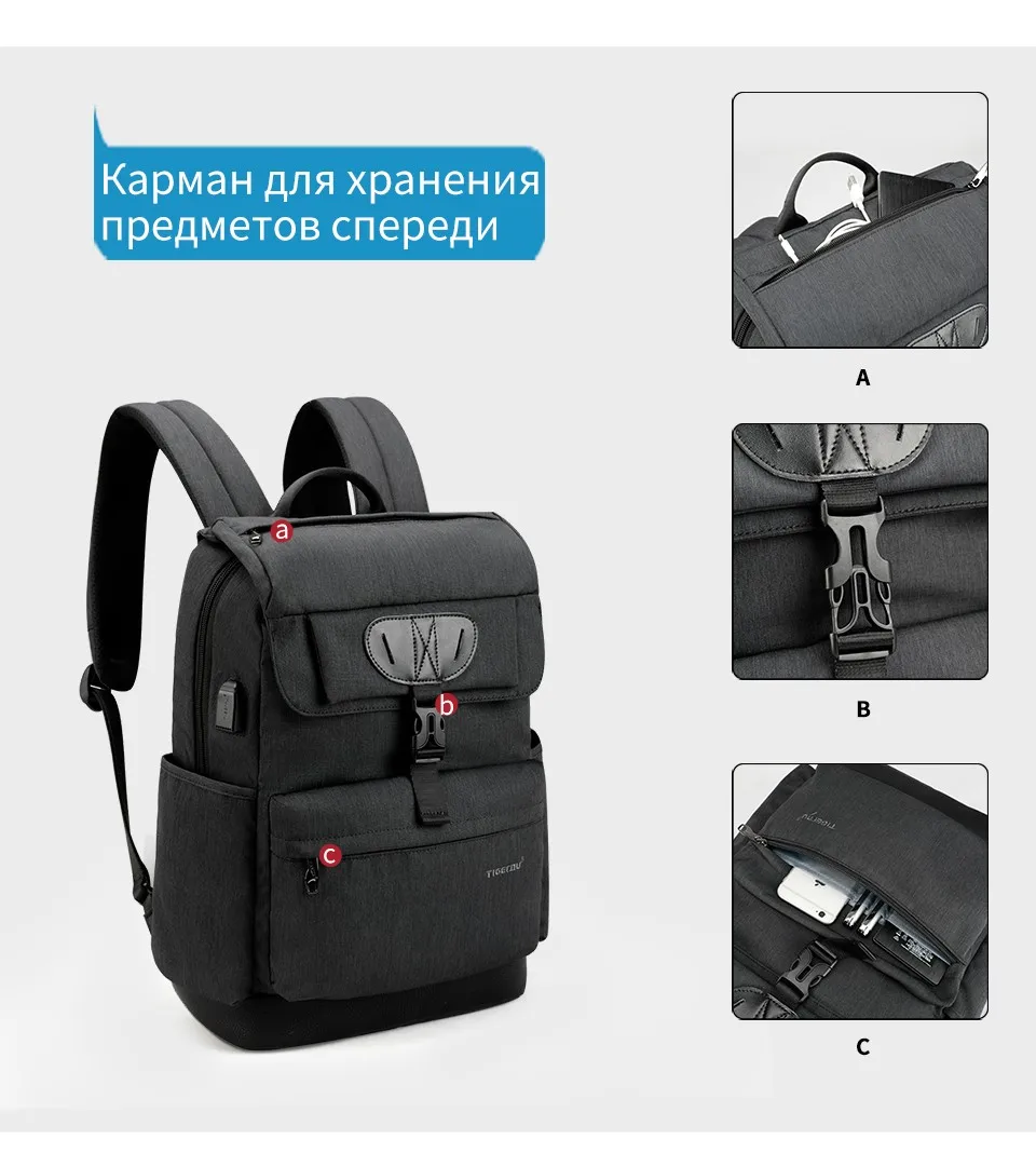 Рюкзак мужской, под ноутбук 15,6 дюйма, водонепроницаемый, с USB-портом для зарядки