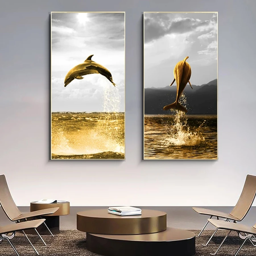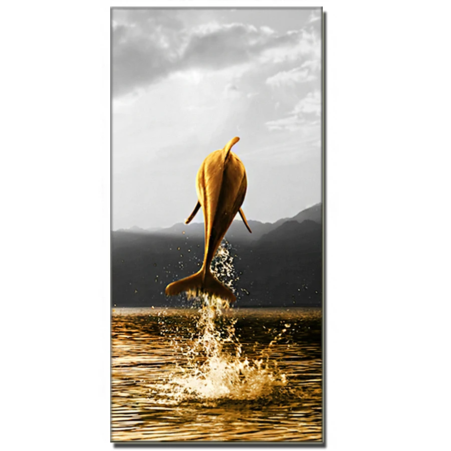 Большой Золотой Дельфин животное картина 5D алмазная картина DIY Круглая Полная Алмазная вышивка набор Пейзаж домашнее украшение ремесла
