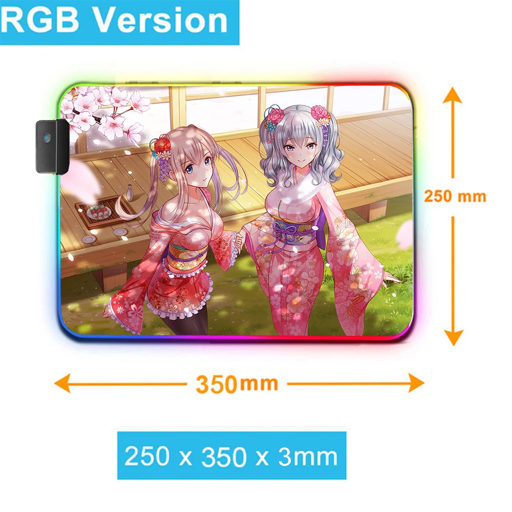 Симпатичный игровой коврик для мыши MRGLZY с аниме loli RGB, светодиодный 4-портовый коврик для мыши, коврики XXL, большой игровой компьютерный Коврик Для Мыши для ПК Csgo