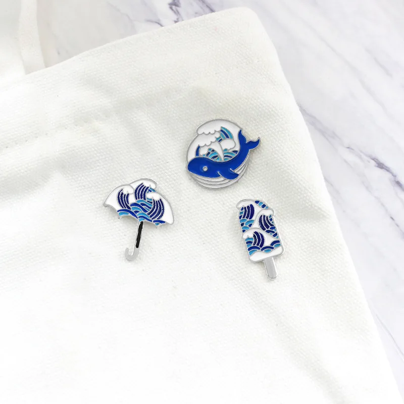 Креативная индивидуальная эмалированная брошь волны моря волны Ретр...