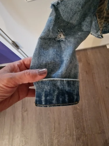 Отличная куртка, но джинса тоненькая. По изделию есть специальные рваные места, учитывайте это. На полный РОССИЙСКИЙ 48 размер подошла Л, еще бы сантиметр и в груди бы не сошлось. Так что будьте внимательны. Я очень рада этой покупке. Стильная дешевая вещь