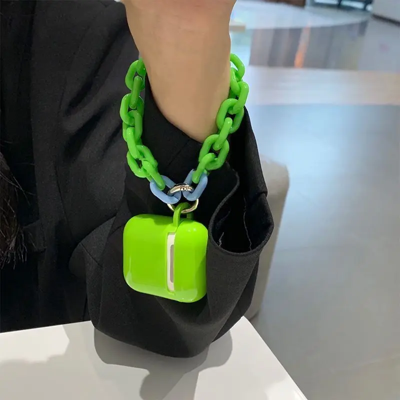 Мягкие силиконовые чехлы для Apple Airpods 12 защитный чехол зеленый браслет-цепочка для Airpods Bluetooth Беспроводная зарядка коробка сумка
