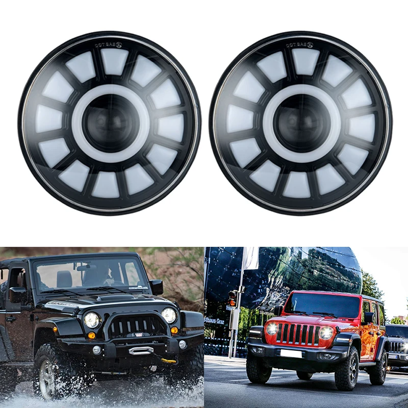 7-дюймовые светодиодные фары, полный гало, фары ангельские глазки для Mazda Miata MX5 H6024 90-97, для Suzuki Samurai, для Jeep Wrangler JK TJ 97-18