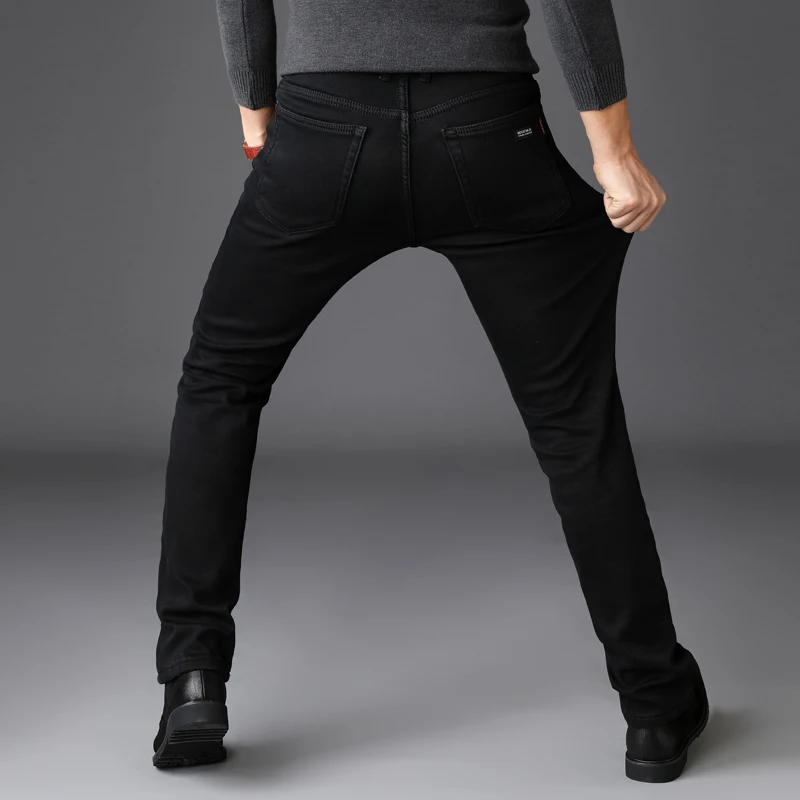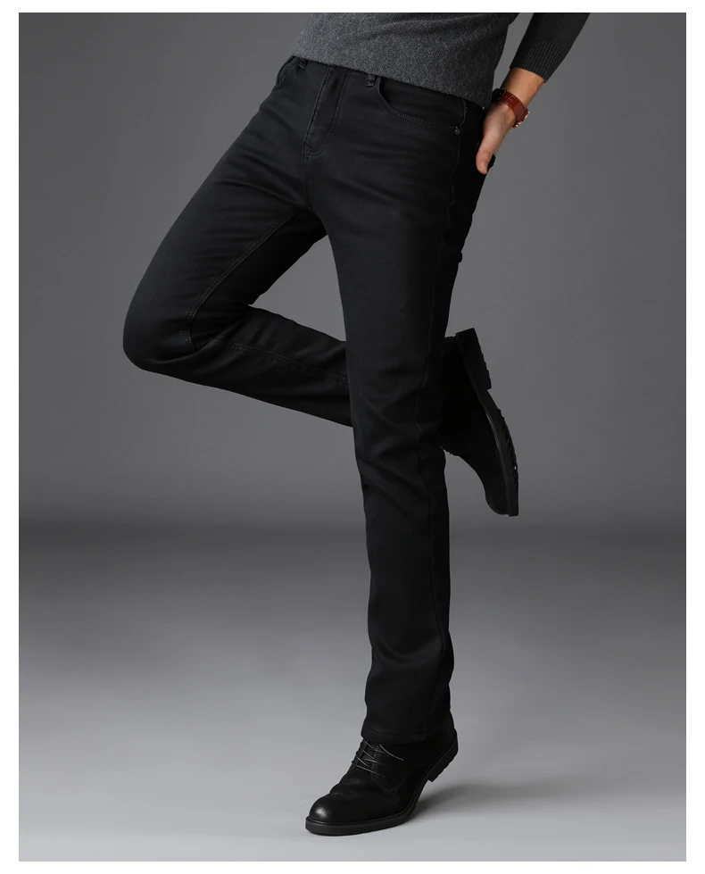 Джинсы мужские стрейчевые, классические черные брюки Slim Fit из де...