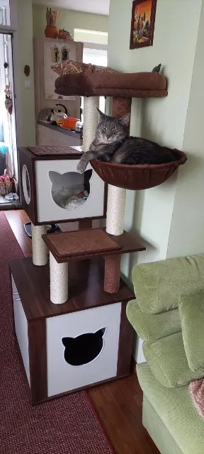 Надежное качество: прочные материалы, панели из шпона высокой плотности и утонченное мастерство гарантируют, что ваш котенок станет полезным, красивым и достойным когтеточком.