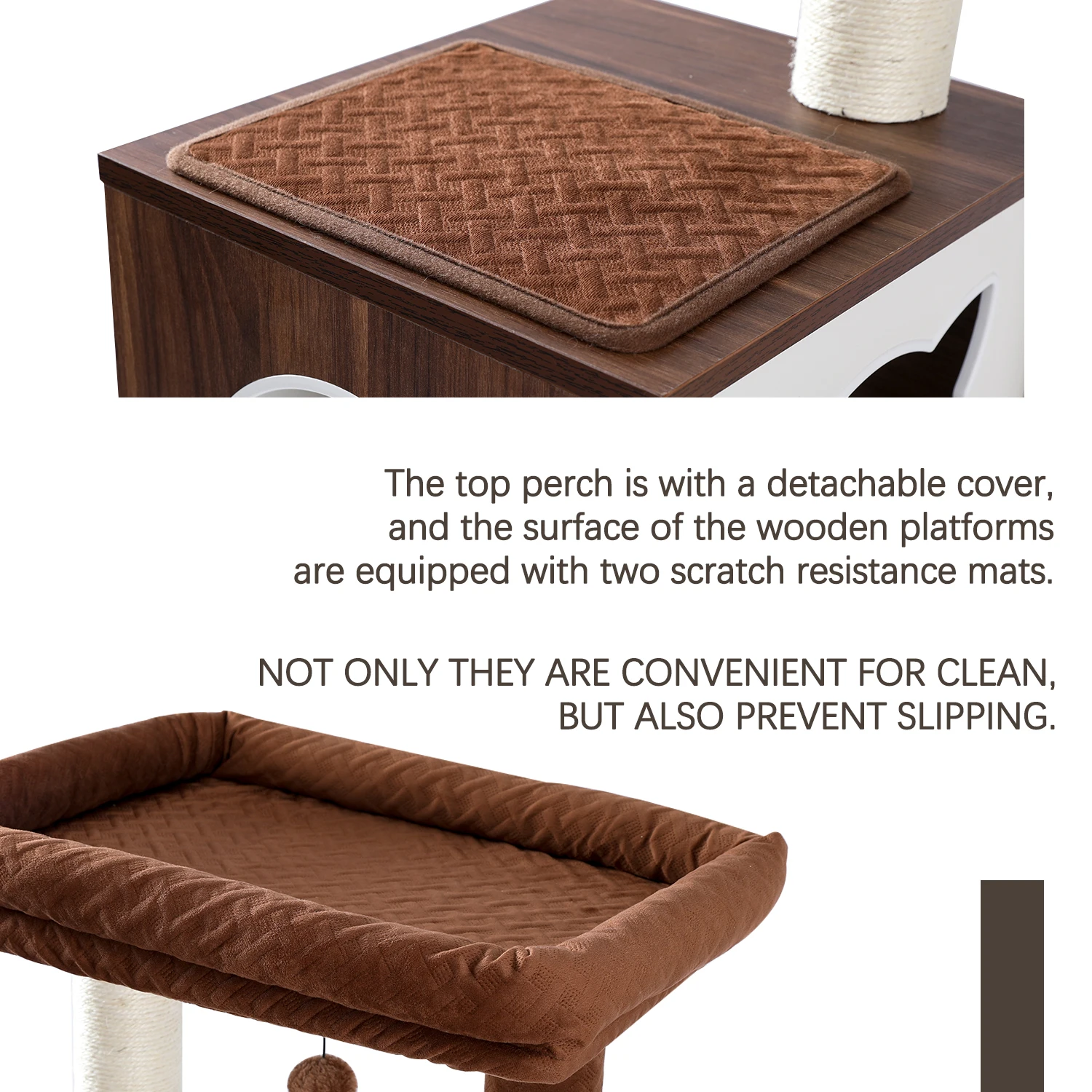 ·Защищает вашу мебель: Эта компактная мебель для кошек состоит из высококачественной древесной плиты с полиэстеровым покрытием, которая очень современная и удобная. Несколько царапин покрыты 100% натуральными сизальными веревками, которые идеально подходят для ваших кошек, чтобы царапать и лазить, больше не царапает вашу мебель.