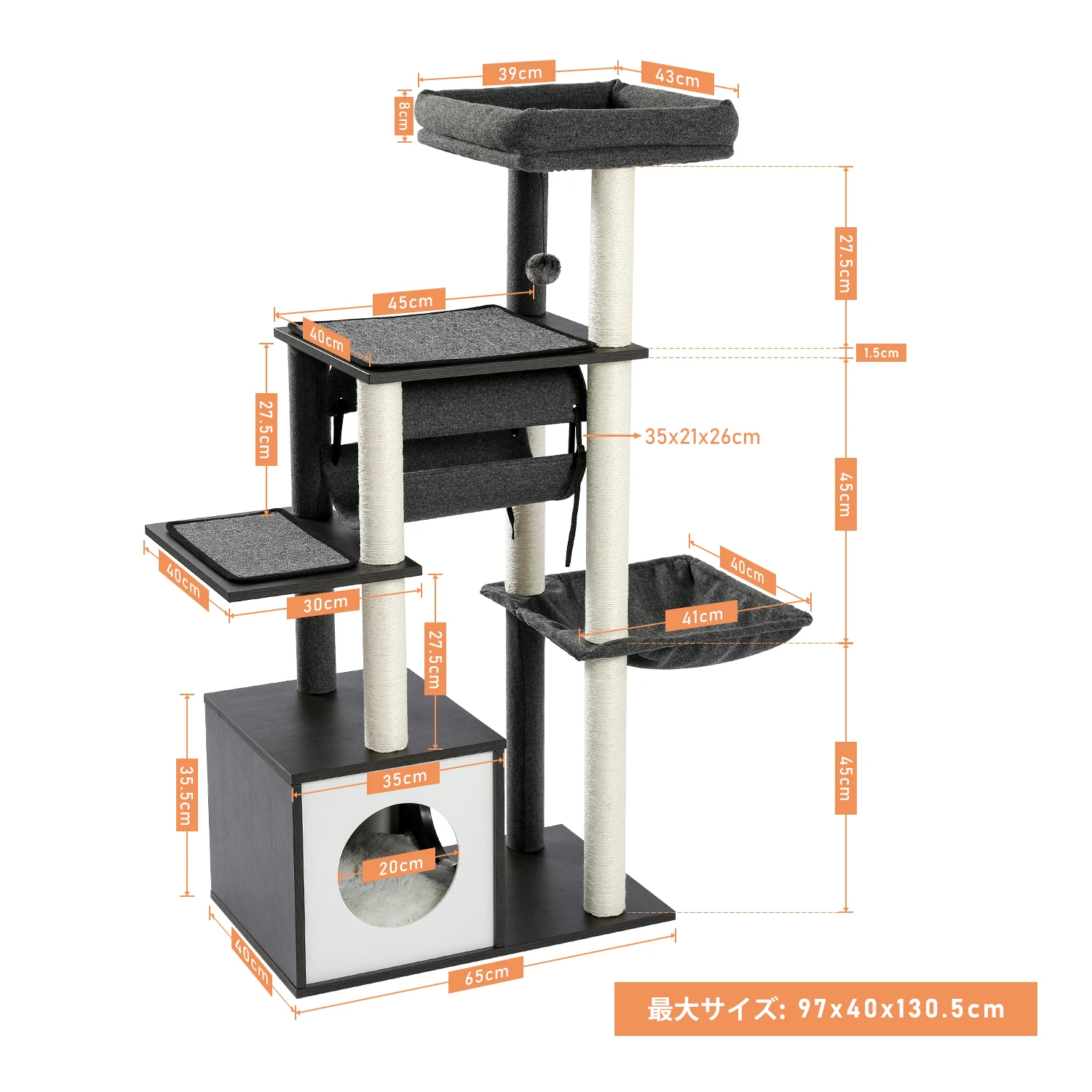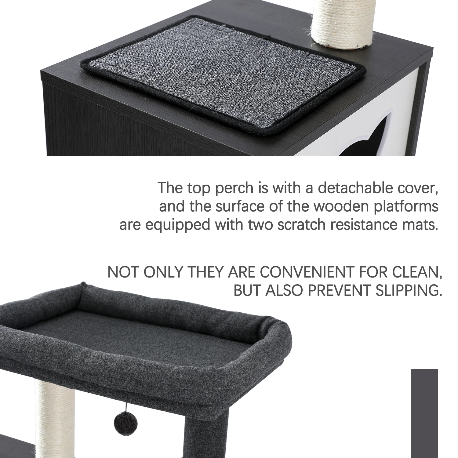 ·Чистое и стильное покрытие: В отличие от традиционного кошачьего дерева, эта современная кошачья башня покрыта полиэстером хорошего качества и серым деревянным зерном, что делает ее более чистой, роскошной и удобной в уходе. Такой красивый и красивый вид может подойти ко всем типам жилого пространства. Независимо от того, находитесь ли вы в общежитии, квартире или доме, это кошачье дерево может быть идеально интегрировано с мебелью.