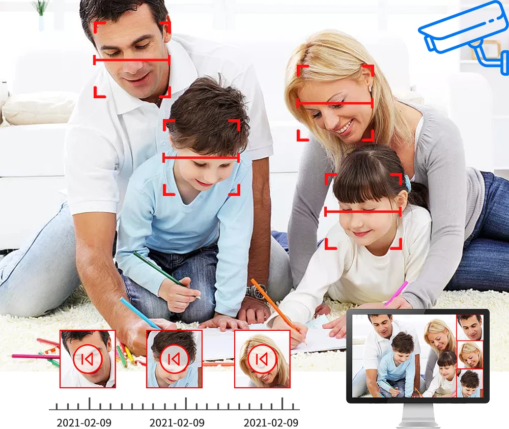 Распознавание лиц, воспроизведение лиц и запись лиц; Распознавание лиц и воспроизведение лиц; Быстрая фиксация изображений лиц и быстрое воспроизведение видео на лицо; Распознавание лиц: Автоматическая фиксация изображений лиц; Воспроизведение лиц: интеллектуальное воспроизведение видео с лица, экономия времени, не упуская каждой детали.