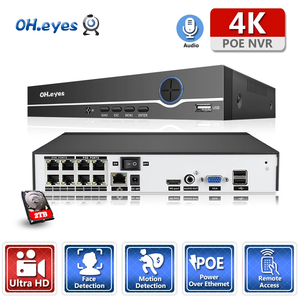 Сетевой видеорегистратор OH.eyes Ultra HD 8CH 4K POE NVR, сетевой видеорегистратор NVR для POE IP-камеры P2P Plug And Play