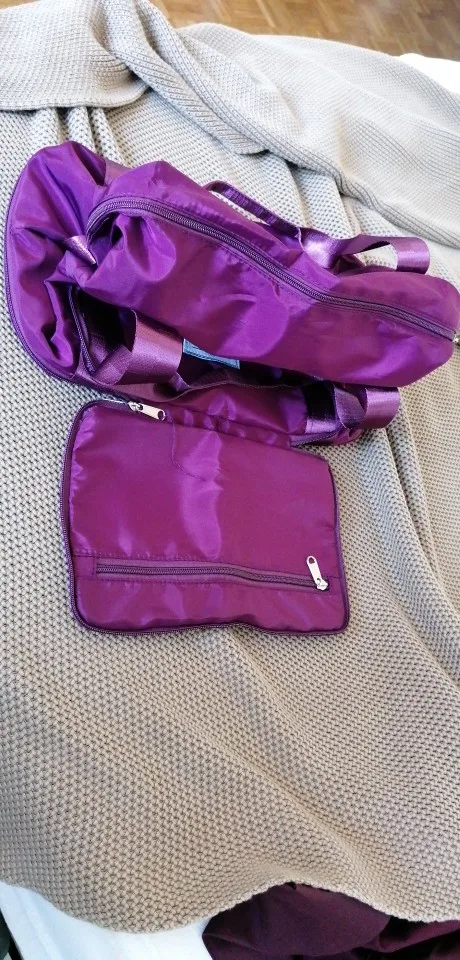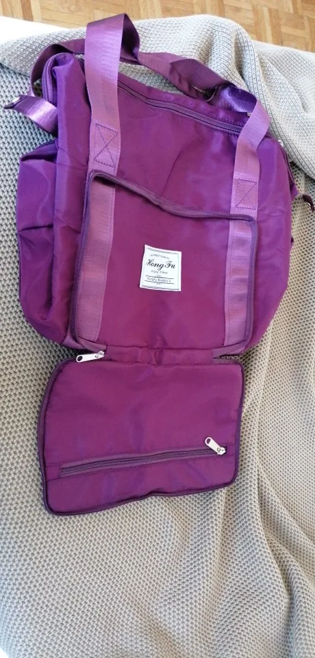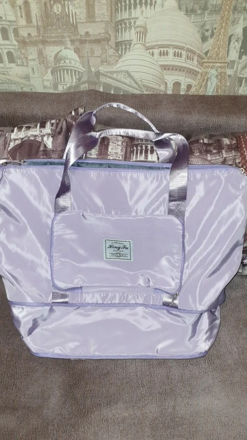 Me encanta. Color precioso, entre morado y burdeos. Tamaño perfecto como bolso auxiliar en viajes, tanto para llevar como bolso de mano en su ta,maño pequeño, como para llevarlo como bolso para equipaje extra en su tamaño grande (con la parte de abajo abierta y extendida).