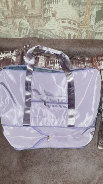 Сумка пришла быстро,за 18 дней в Ставропольский край дольше на таможне лежала,чем с Китая шлаПродавец отправил сразу..Спасибо ему за то,что не заставил ждать.Брала фиолетовую.Сумка большая,без лишнего утяжиления,ткань гладкая,водонепроницаемаяБольшая,на фото мне показалась меньше.Мне понравилась,взяла для путешествий .Понравился карман впереди,для планшета.Думаю,сумка надёжная,по-крайней мере и ручки и ткань плотная.