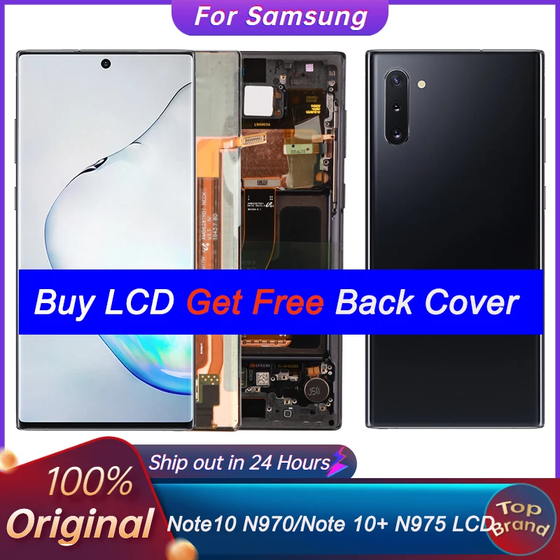 100% Оригинальный AMOLED дисплей + рамка Note10 + для SAMSUNG Galax...