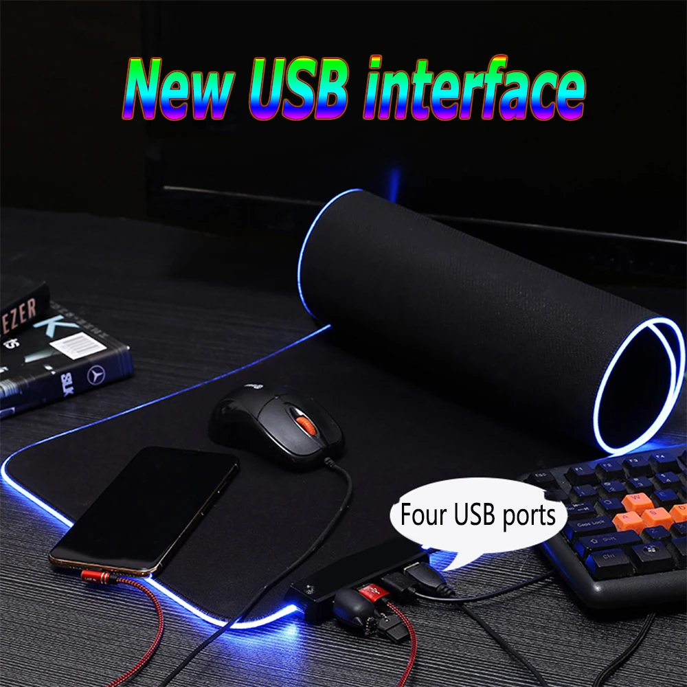 Игровой компьютерный коврик для мыши RGB, 4 порта, большой коврик д...