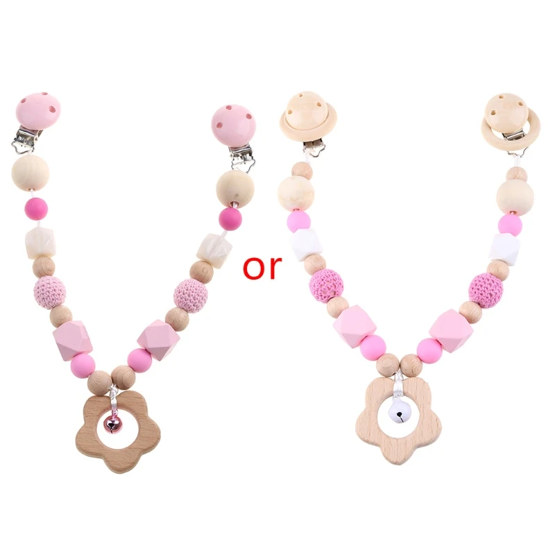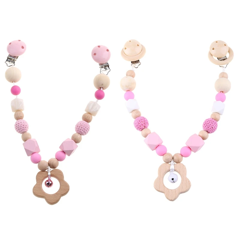 Деревянный Прорезыватель для зубов, детская игрушка для прорезывания зубов, детская игрушка для прорезывания зубов в коляске, силиконовый детский прорезыватель, цепочка для прорезывания зубов
