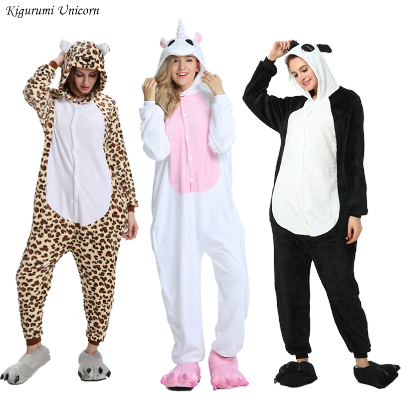 Леопардовые кигуруми, единорог, женский костюм, Теплый Мягкий Свинь...