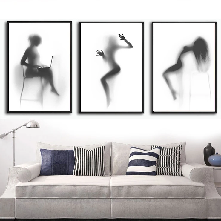 Черно-белая абстрактная женщина настенное Искусство Холст пол поза ...