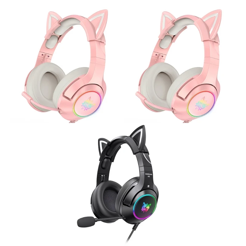 Наушники ONIKUMA K9 с кошачьими ушками для девочек, игровая гарниту...