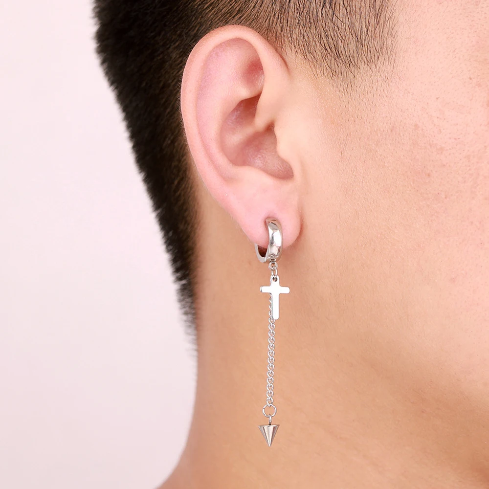 3 пары, нержавеющая сталь, не пирсинг кольцо, серьги, не Подвеска для пирсинга, череп, крест, треугольник, кисточка, серьги для мужчин, женщин, мужчин