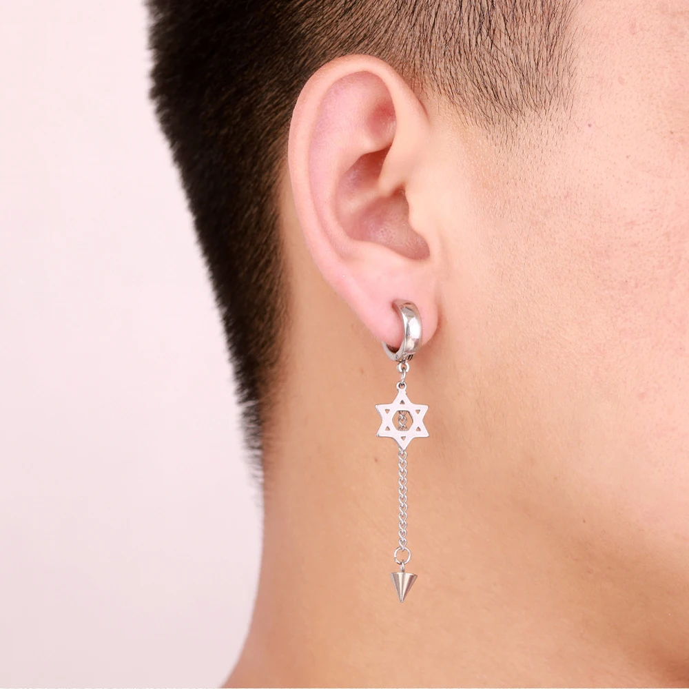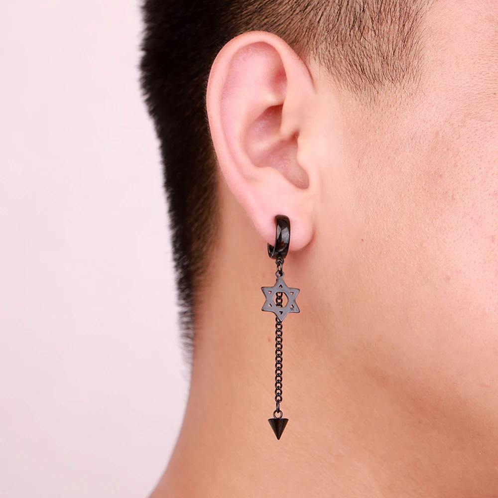 Индивидуальные черные полые треугольные серьги-подвески, мужская мо...