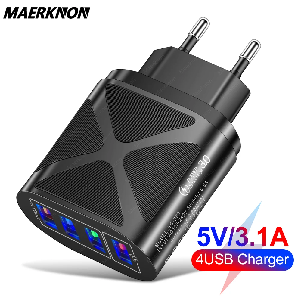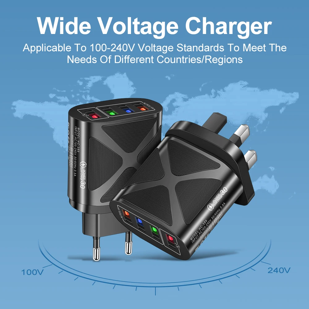 Feature 248W Quick 4 USB Charger Adapter 3.0 USB Charge Plug Wall Charger