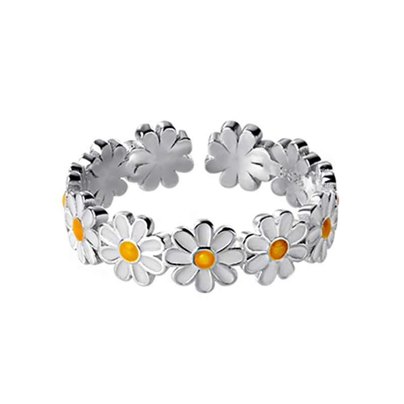 Женское кольцо с цветком Маргаритка, из серебра 925 пробы