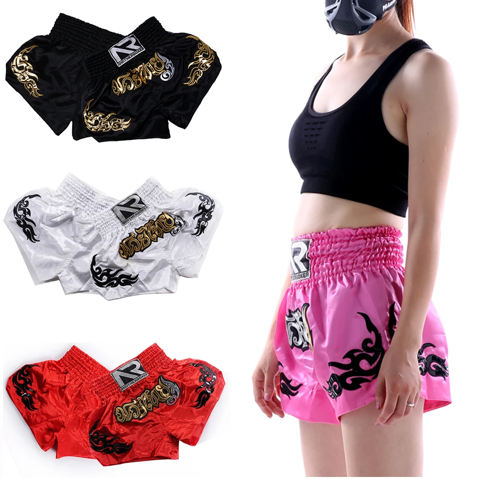 Шорты Muay Thai женские для соревнований, тренировочные боевые короткие штаны для ММА, для мужчин и девочек, для мальчиков, боксерские костюмы с сандой, Красный Белый Розовый Черный