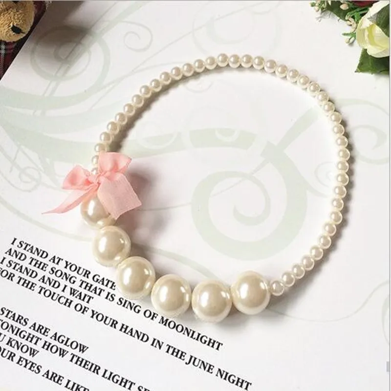 Аксессуары для платья принцессы для маленьких девочек, очаровательные ювелирные изделия, Подарочные Классические кружевные цепочки с бантом и искусственным жемчугом, ожерелья для детей