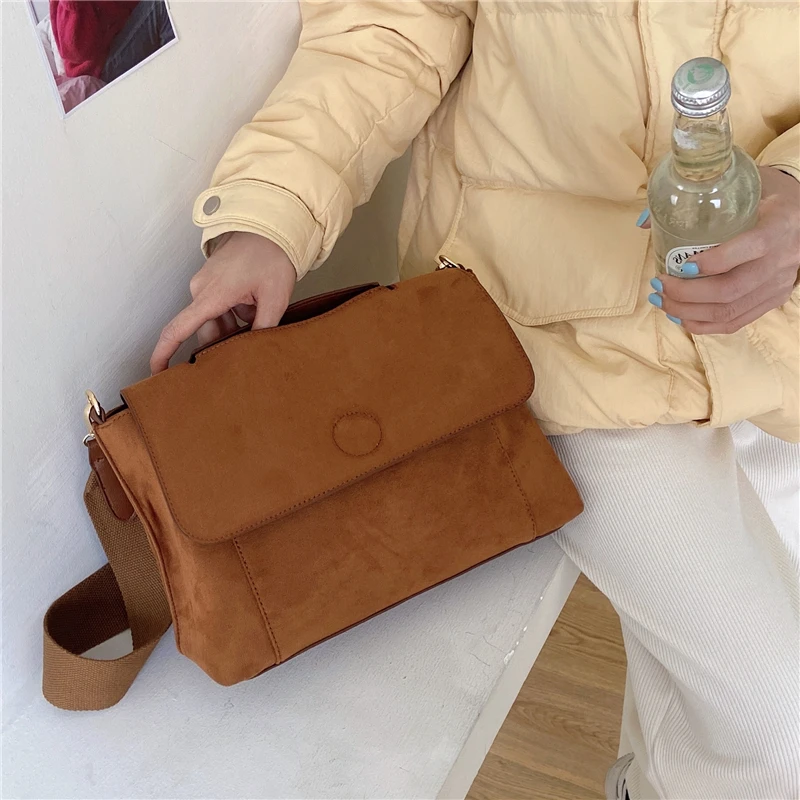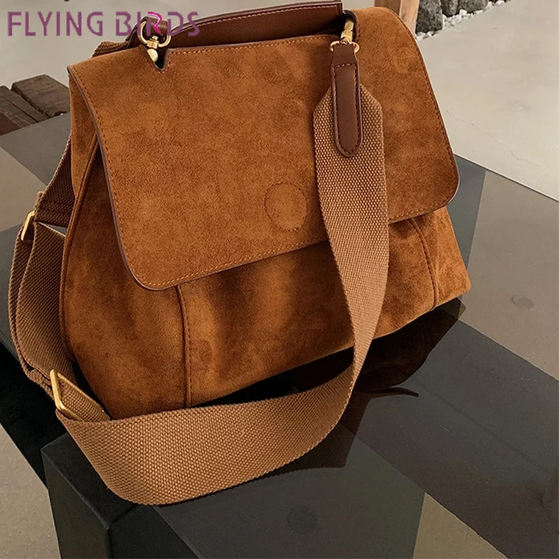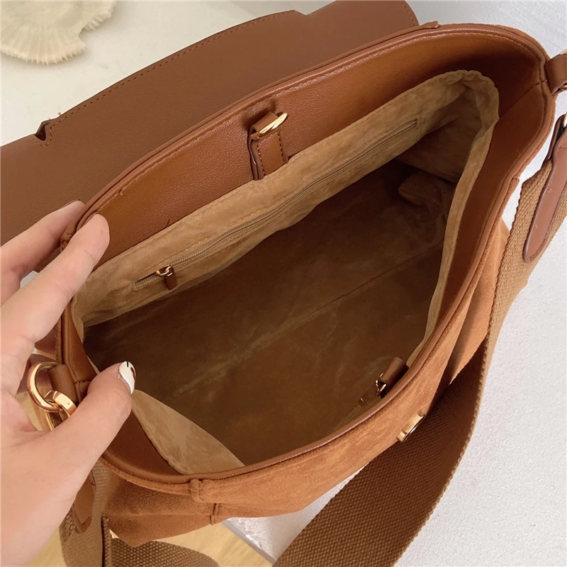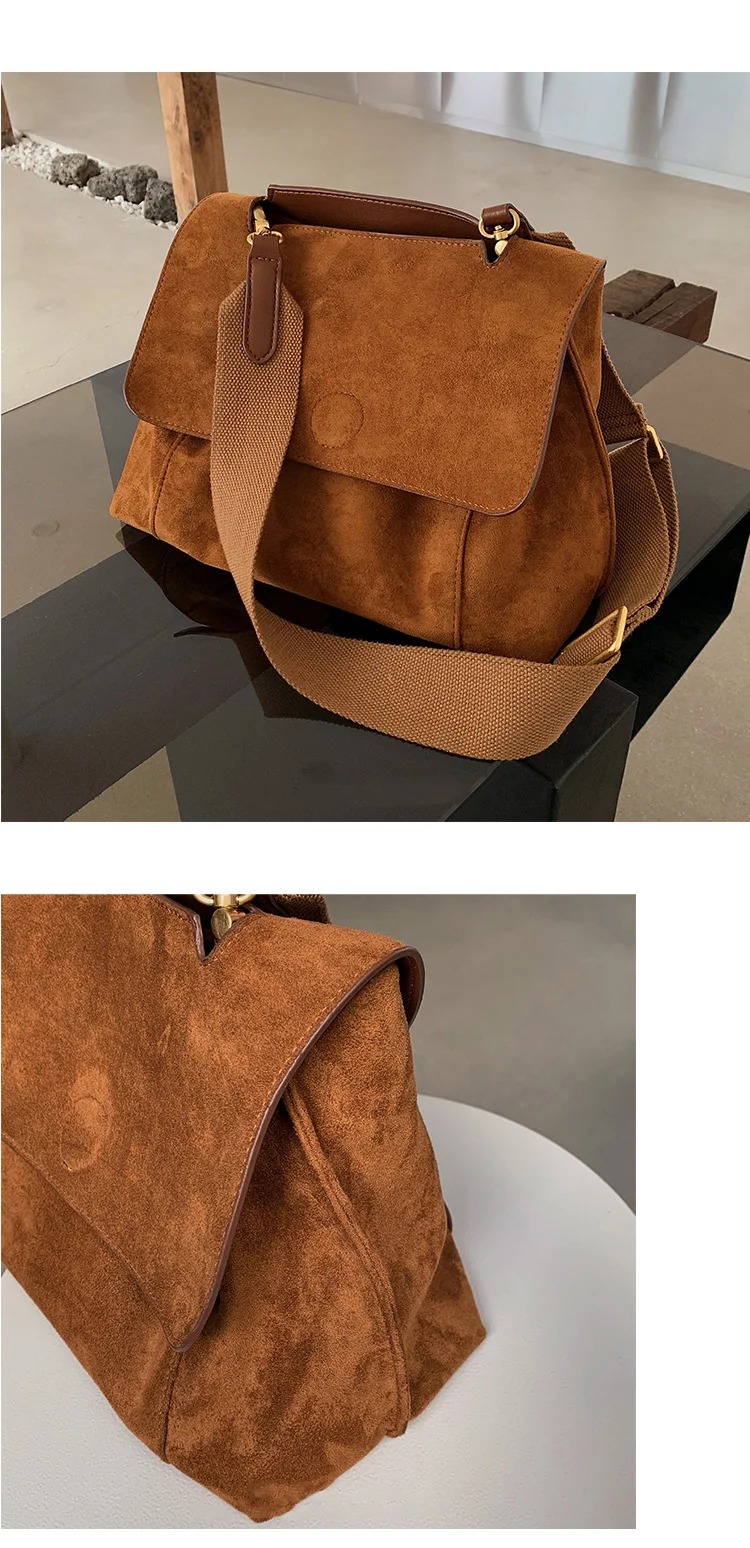 Винтажная вместительная сумка через плечо, роскошные дизайнерские дамские сумочки из нубука и искусственной кожи на широком ремешке
