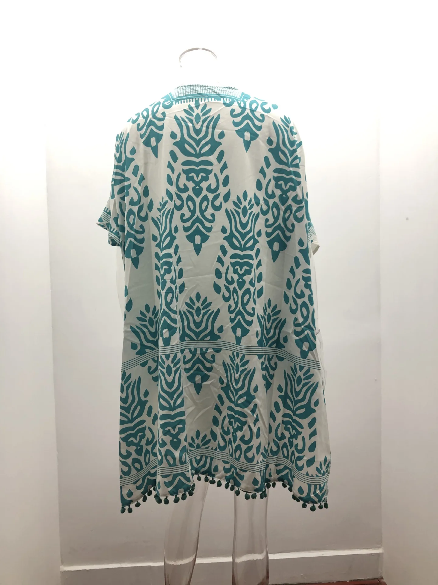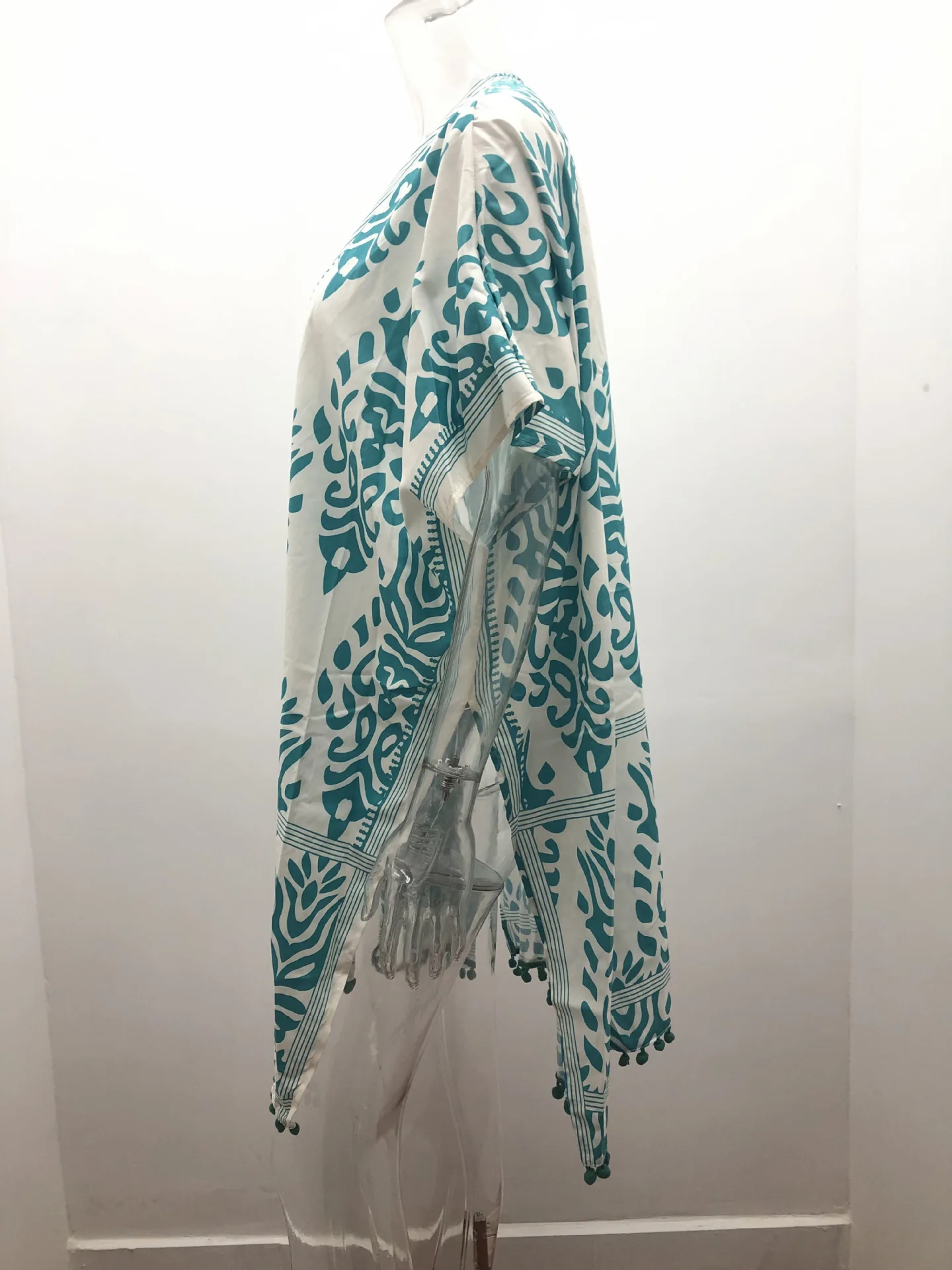Женское шифоновое кимоно, топ средней длины с принтом и помпонами, для отпуска у моря, 2021, кардиган с коротким рукавом