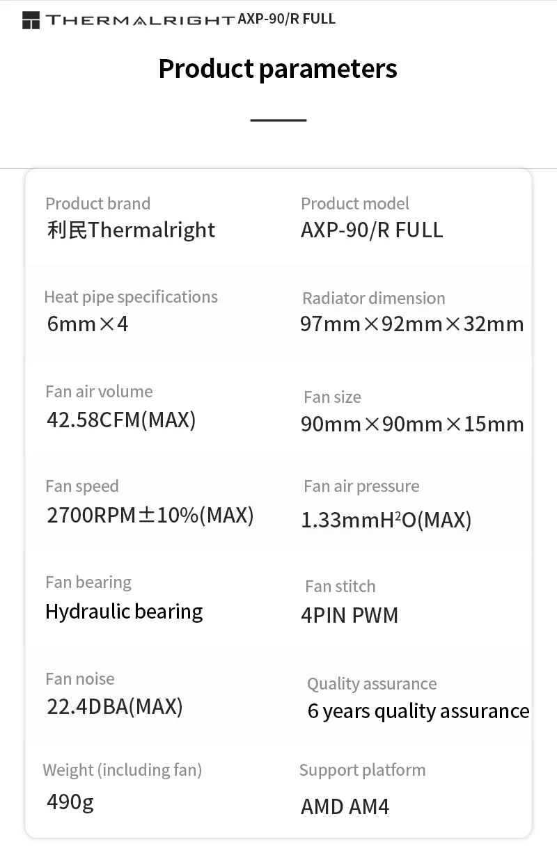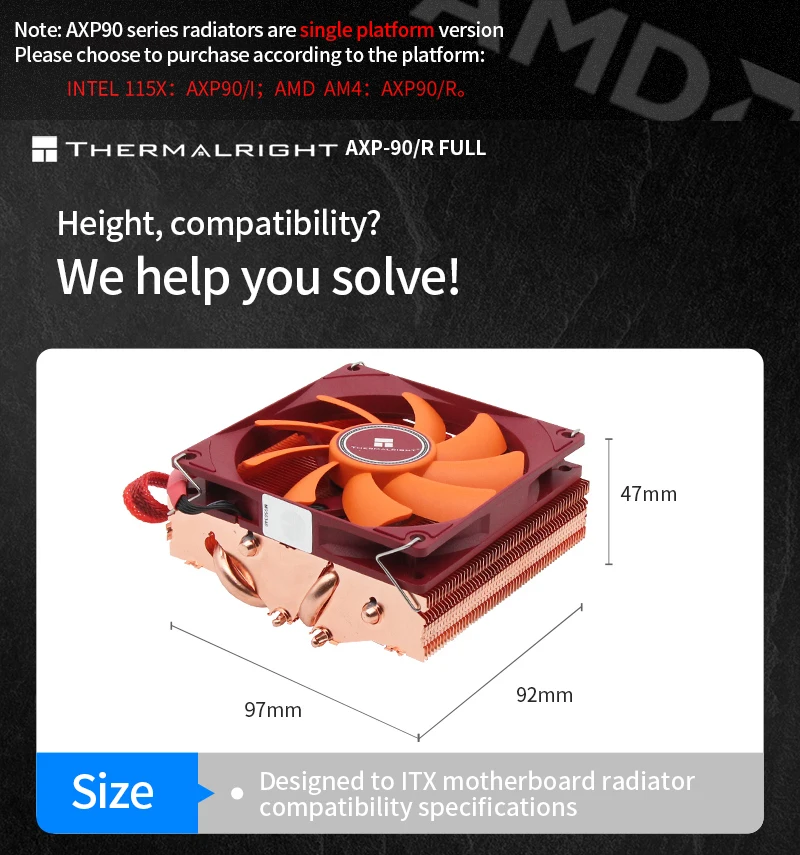 Тепловая труба Thermalright AXP90 из чистой меди, 4, 47, высота, радиатор для ЦП