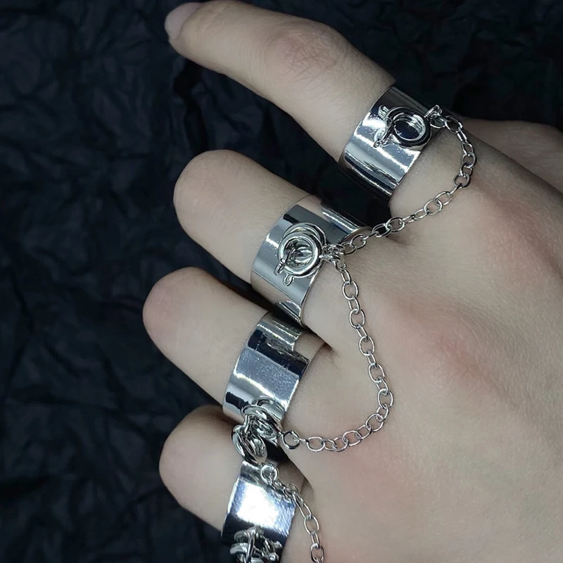 Кольцо в стиле панк, Крутое кольцо, регулируемая цепочка из четырех...
