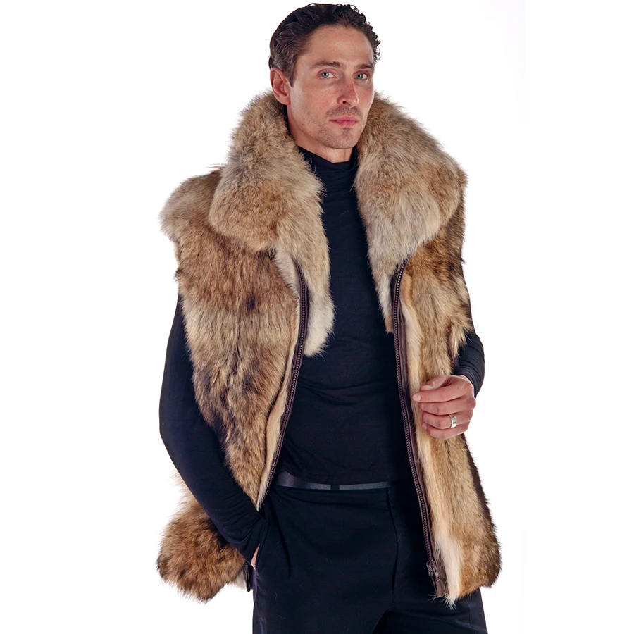 Мужской меховой жилет на молнии, теплая безрукавка из натурального меха койота, Осень-зима
