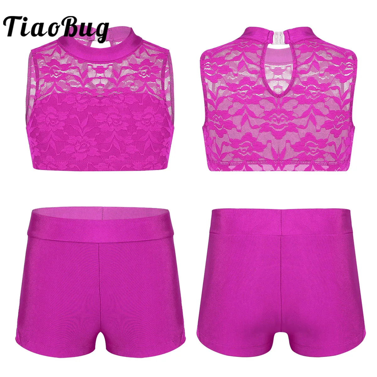 Подходящие низ с широким эластичным поясом, треугольным кружевом снаружи штанины. Модный спортивный комплект для вашей девочки.