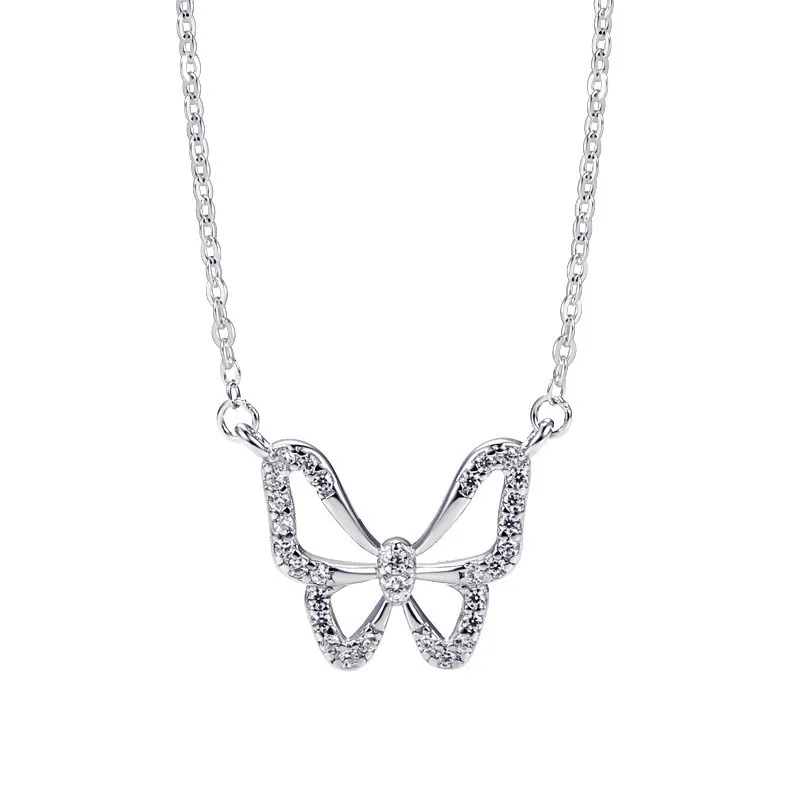 Серебряный цвет, блестящее ожерелье-бабочка с цирконием, блестящее животное, колье, кулон, вечерние, подарок для дам, модные ювелирные изделия