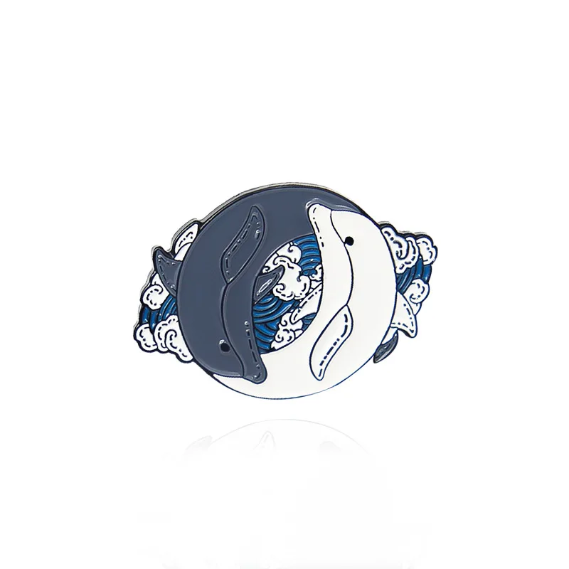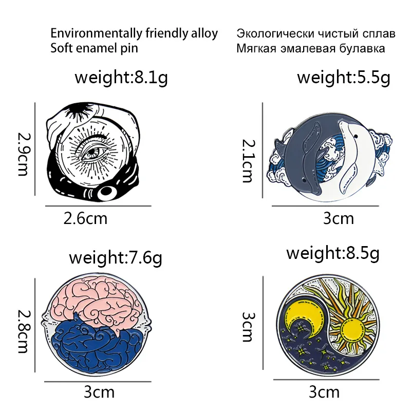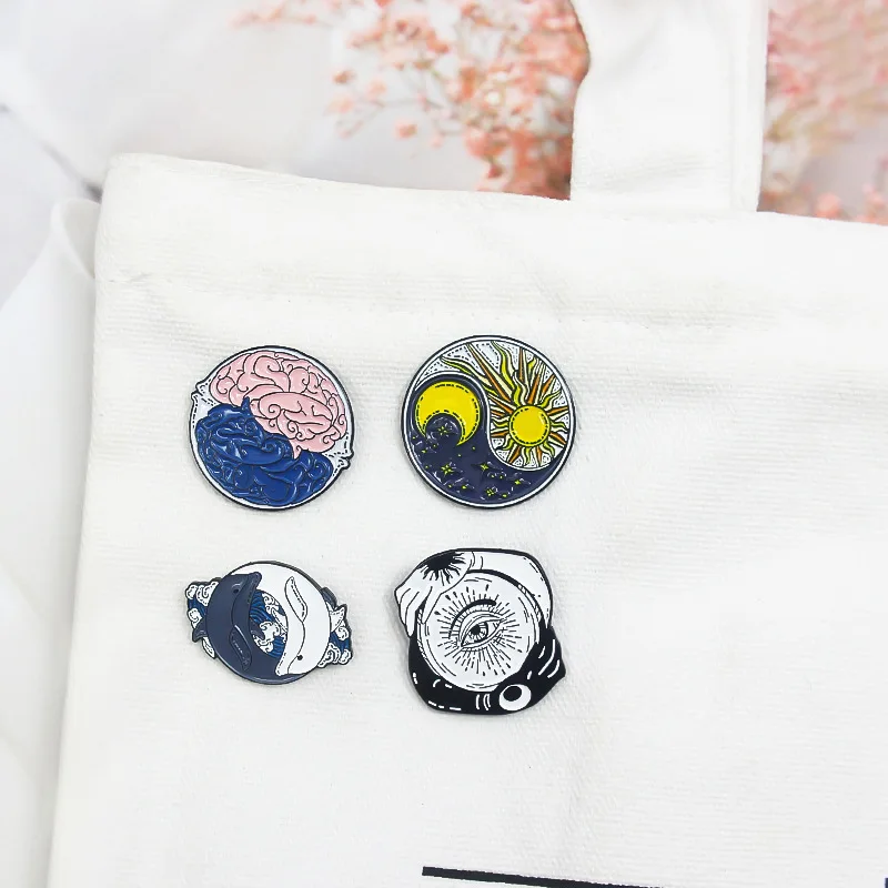 Круглая эмалированная брошь в стиле Тай-Чи, луна, дельфин, мозг, глаз, сплав, значок в стиле панк, женское ювелирное изделие, подарок для друзей
