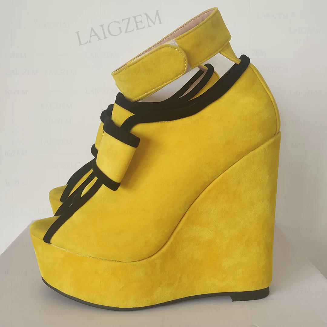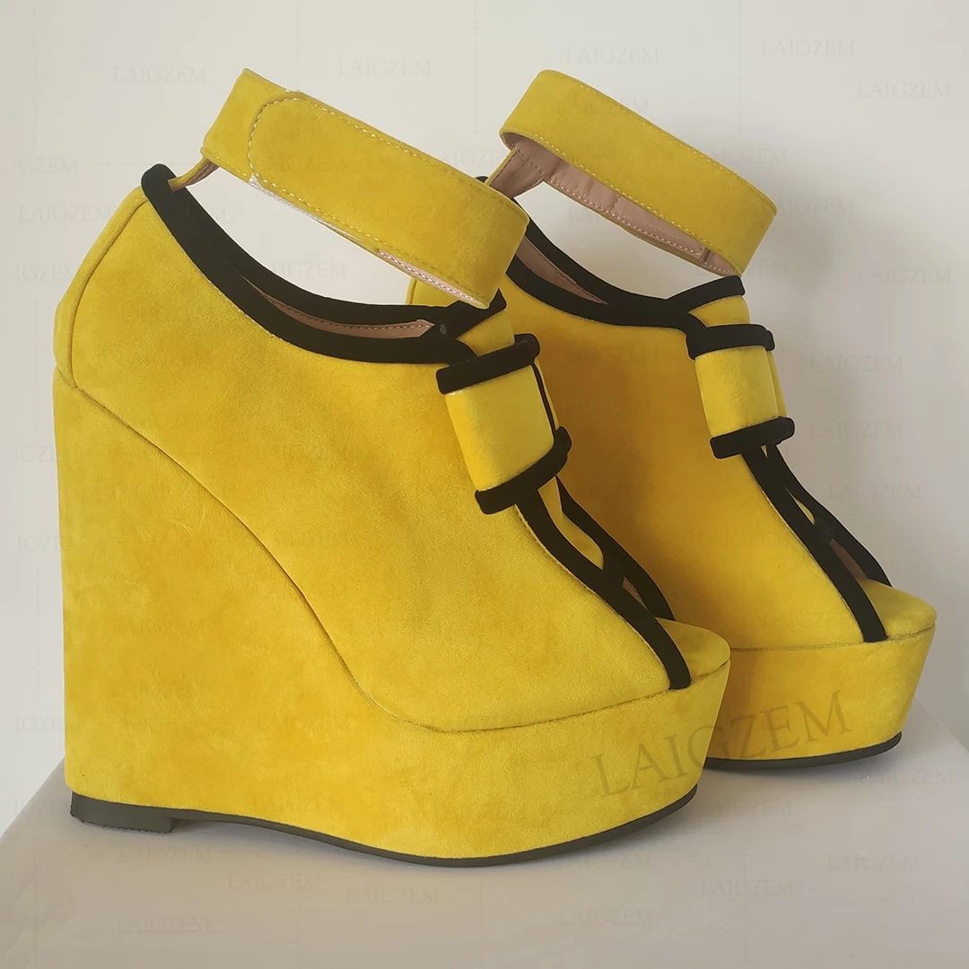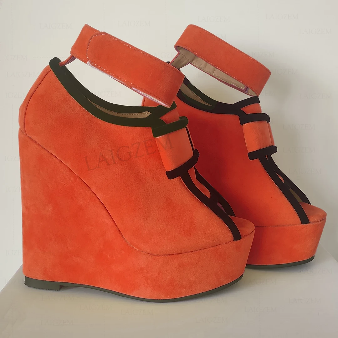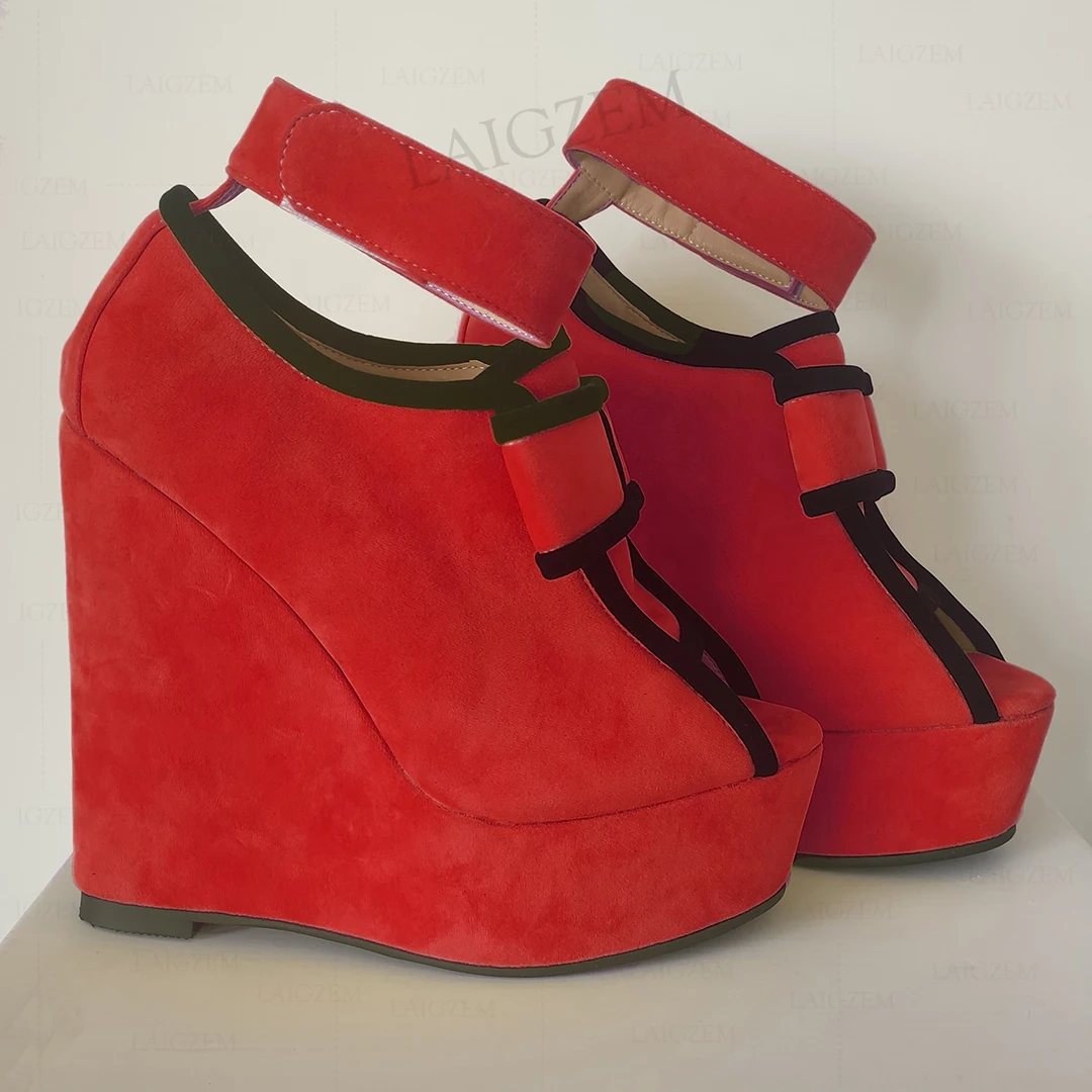 BERZIMER/женские туфли-лодочки; Босоножки на танкетке с открытым носком в стиле пэчворк; Женская обувь для вечерние и клубов; Большие размеры 40, 46, 52