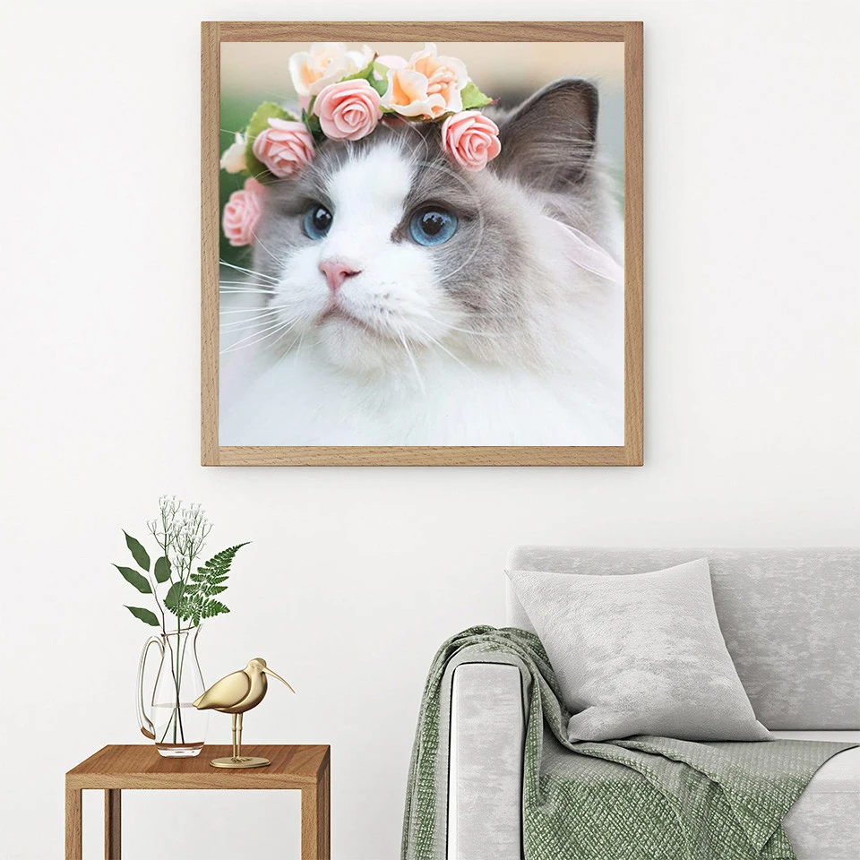 AZQSD Алмазная Картина Кот цветок вышивка крестиком Стразы Алмазная вышивка животное мозаика ручной работы украшение для дома