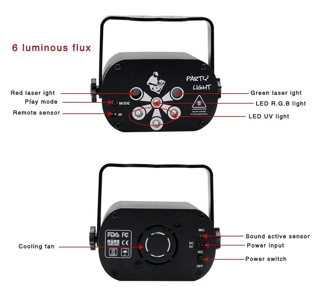 Этот лазерный светильник является продуктом класса 3B, запрещено подвергать невооруженным глазкам непосредственно лазеру, в противном случае это может повредить глаза.