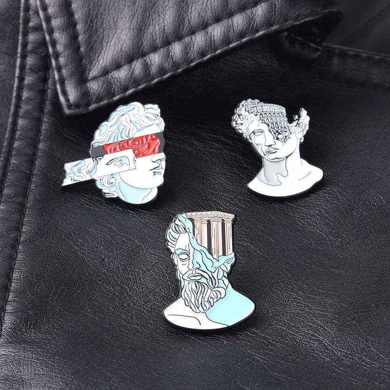 Эмалированная брошь с изображением Давида, цветов и скульптур, в стиле древней римской архитектуры, портрет, резьба по камню, металлические значки, ювелирные изделия для сумки и рюкзака