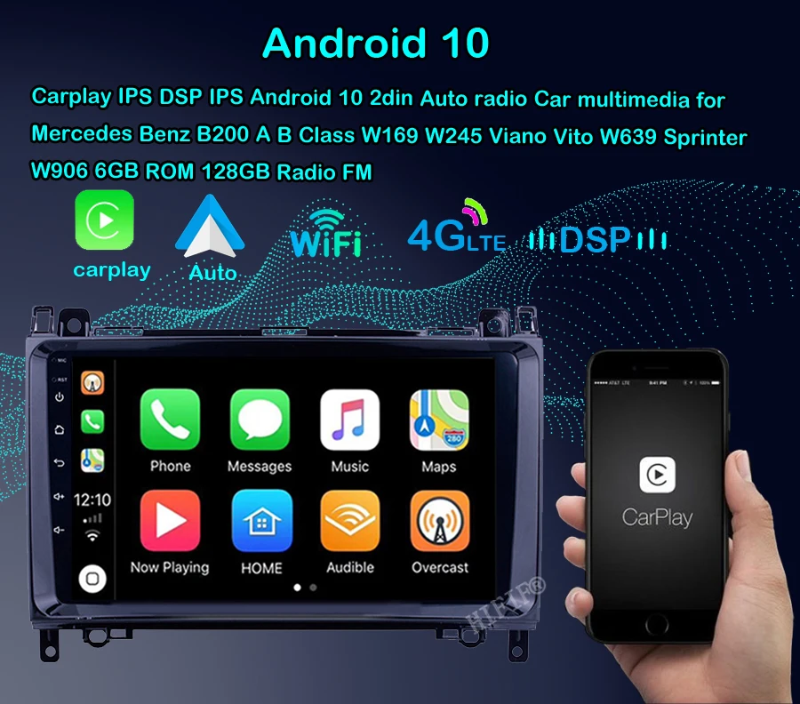 Автомобильный мультимедийный плеер на Android 10,0, навигация, GPS-радио для Mercedes Benz B200, A, B, класс W169, W245, Viano, Vito, W639, Sprinter, W906