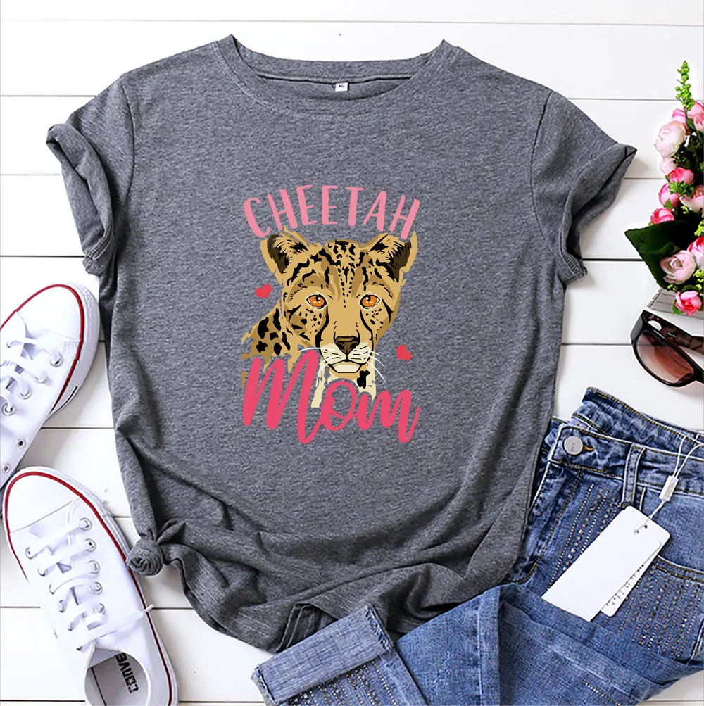 Летняя женская рубашка из 100% хлопка, футболка для матери с гепардом, женская футболка оверсайз с рисунком S-5XL, топы с круглым вырезом и коротким рукавом, футболка