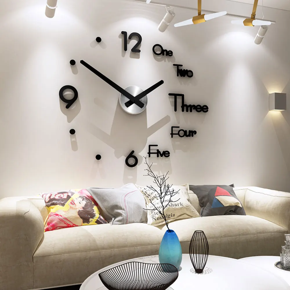 Большие настенные часы, акриловые 3d-часы сделай сам с зеркальным механизмом и наклейками, кварцевые украшения для дома, гостиной
