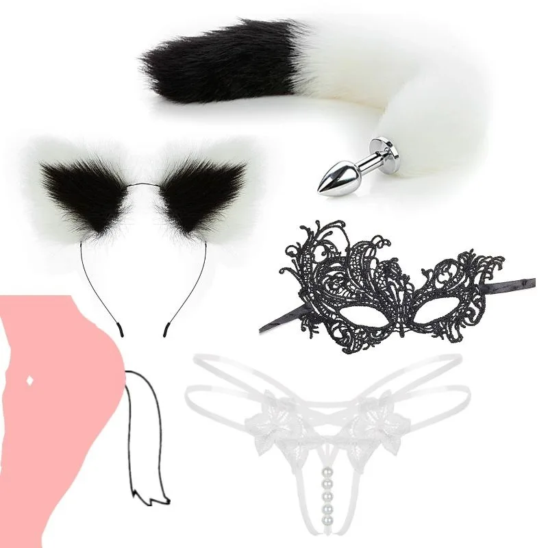 4 шт. хвост Анальная пробка игра для взрослых анальные секс-игрушки набор БДСМ пробка для рта костюм для бондажа кошачьи ушки женское белье