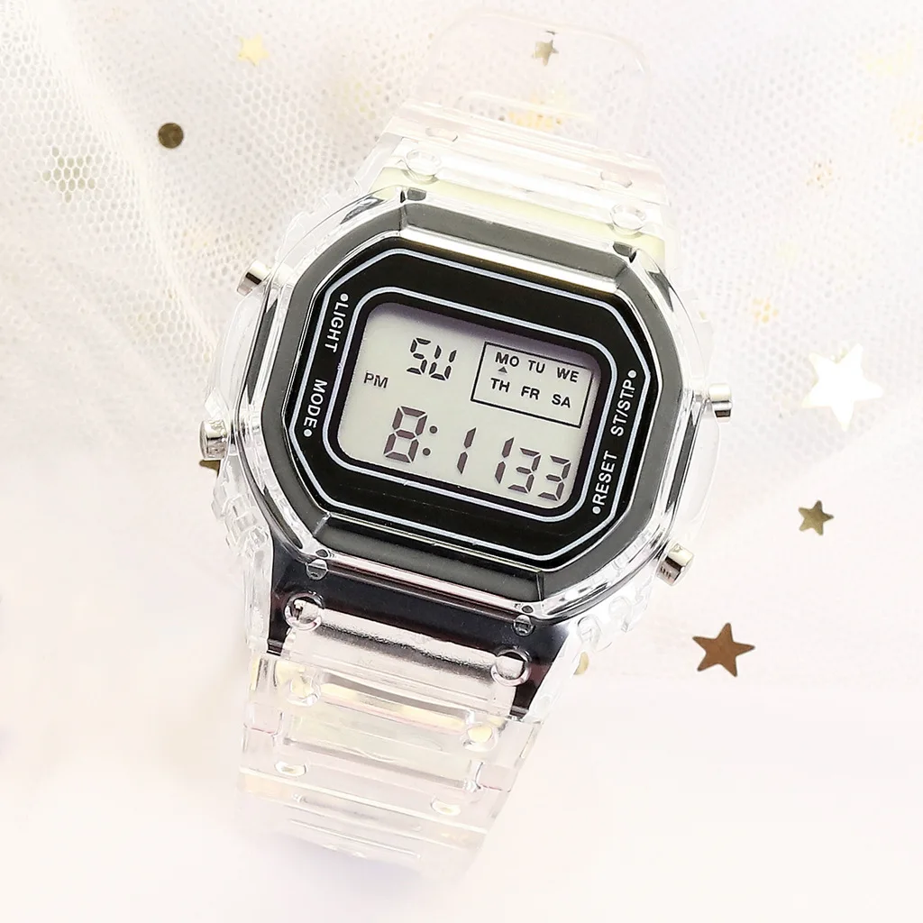 Женские часы PCVF91W, спортивные часы со стальным ремешком, Женские электронные наручные часы, студенческие светодиодные цифровые часы, Кристальные квадратные