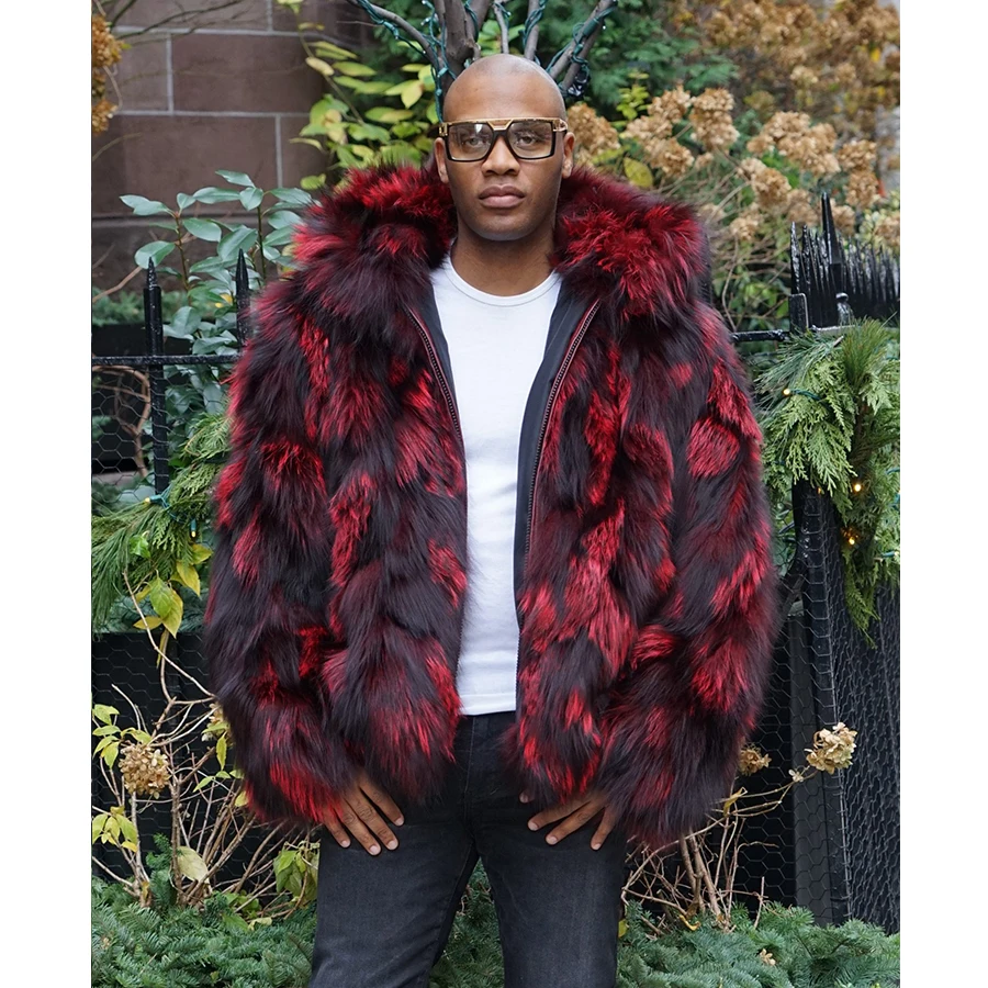Куртка-бомбер мужская из натурального Лисьего меха, пальто с капюшоном, зима 2021