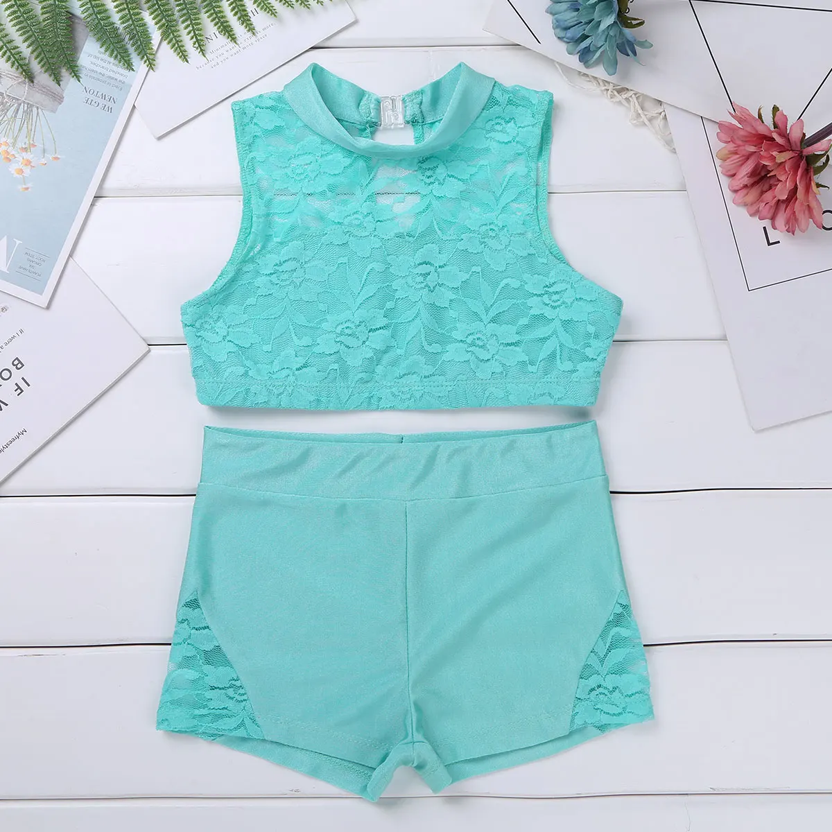 Кружевной укороченный топ без рукавов с цветочным рисунком; Вырез с застежкой. Эластичная ткань, удобная и дышащая.
