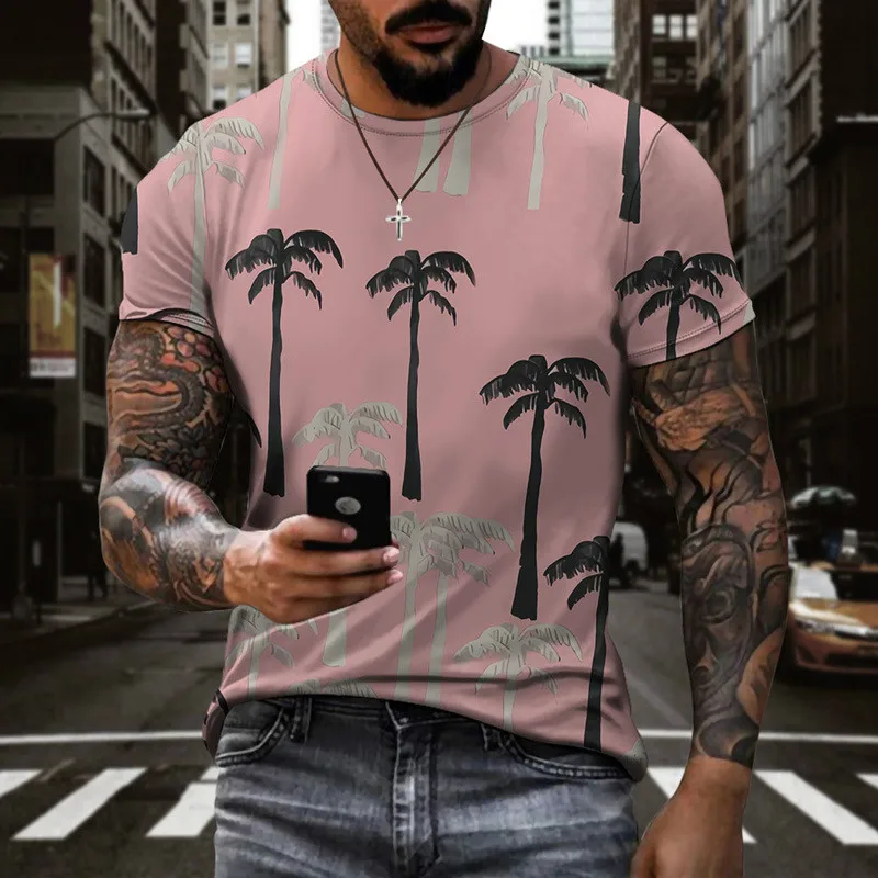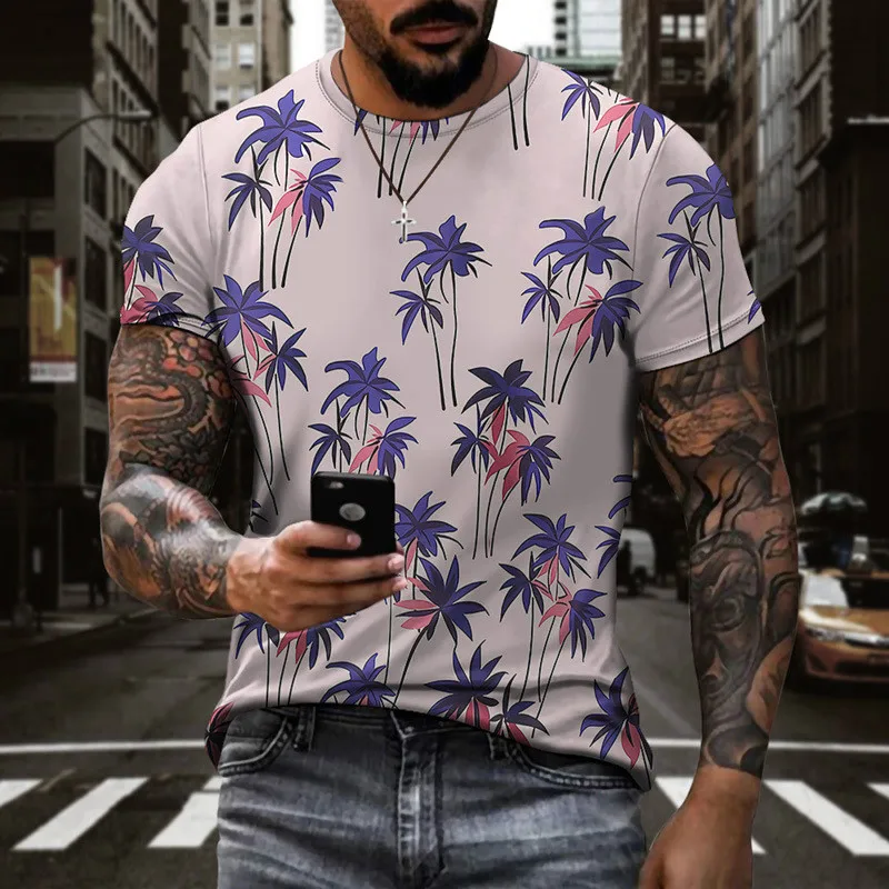 Футболка мужская с цифровым 3D принтом, брендовая пляжная одежда с коротким рукавом, с цветочным принтом, для отдыха