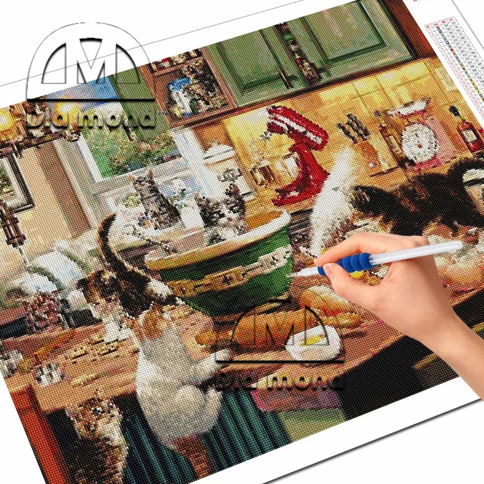 Алмазная вышивка 5D "Счастливая семья", кошка, стразы, искусство, вышивка крестом, собака, животное, украшение для дома и кухни