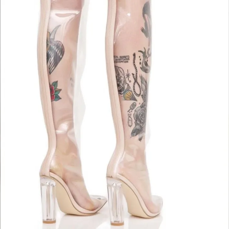 Сапоги до бедра, женские модные прозрачные сапоги для ночного клуба и стриптиза из ПВХ на высоком каблуке, летние привлекательные рыцарские сапоги с острым носком, размер 34-48, Новинка