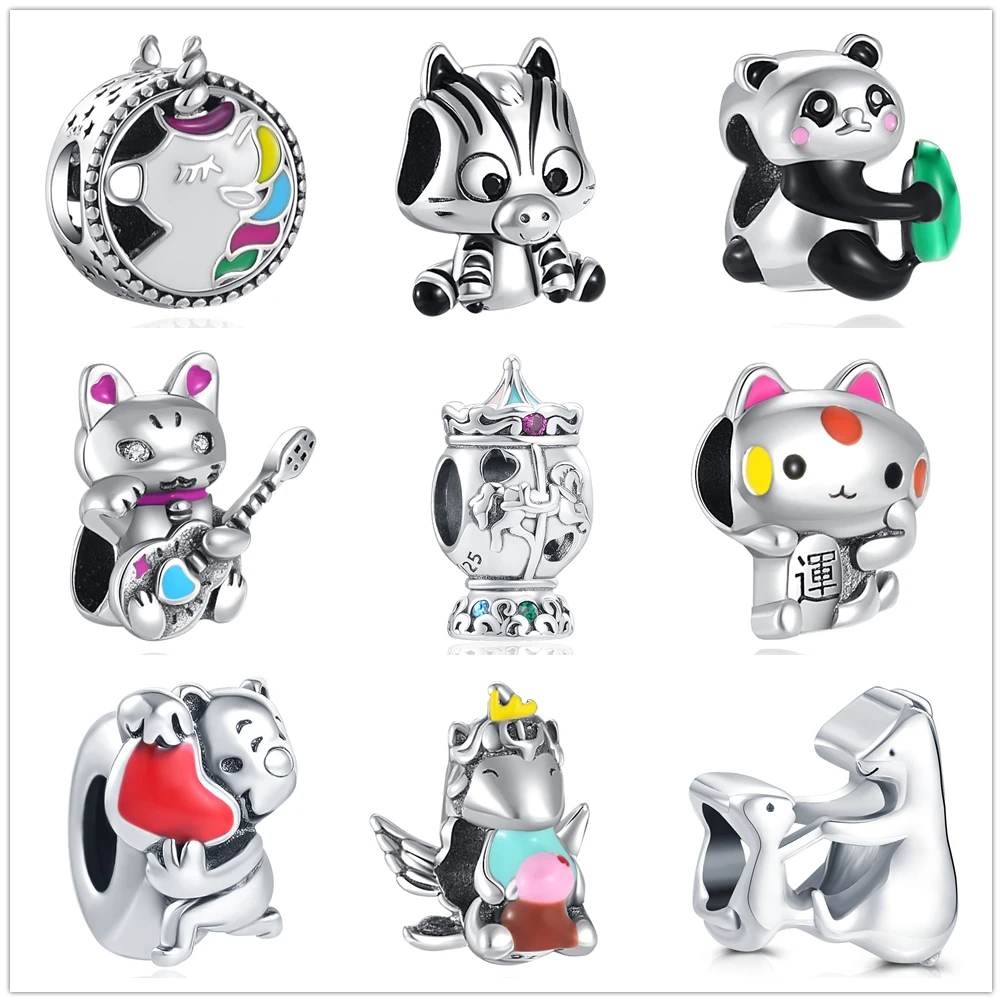Милая карусель кошка щенок медведь тигр панда Шарм Бусина Подходит для Pandora шармы Серебро 925 оригинальный браслет для женщин DIY ювелирные изделия